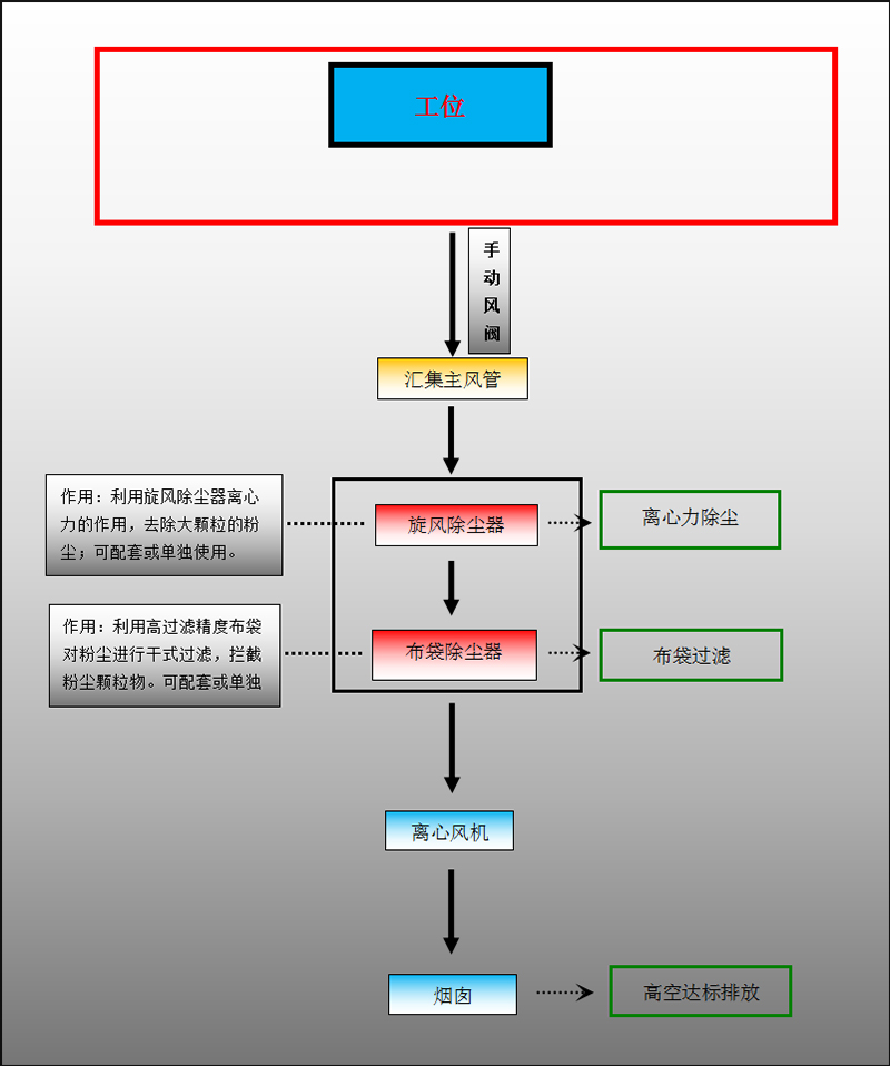 1) 解決工業(yè)未經(jīng)收集的粉塵,影響加工生產(chǎn)環(huán)境及員工的身體健康。