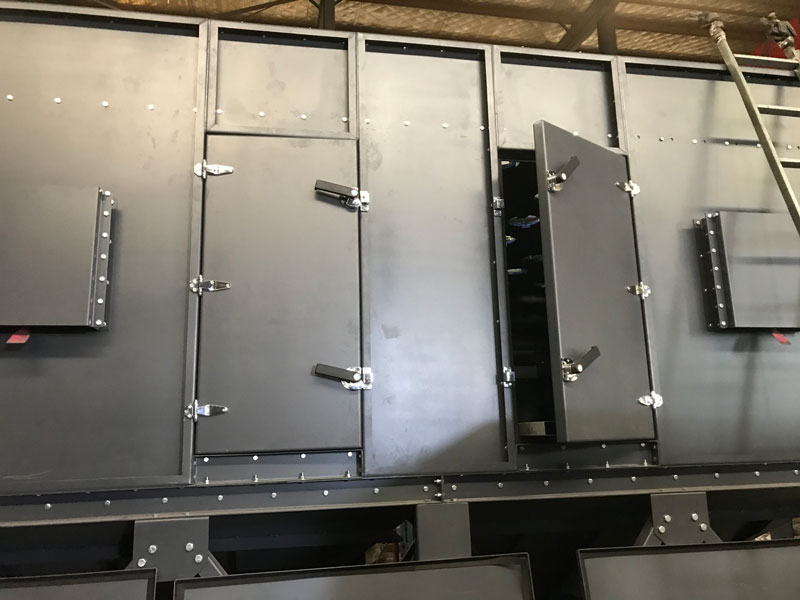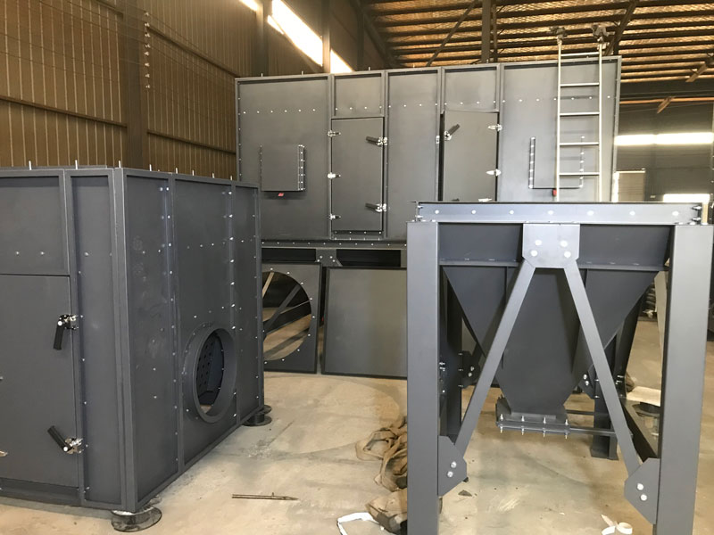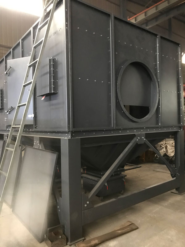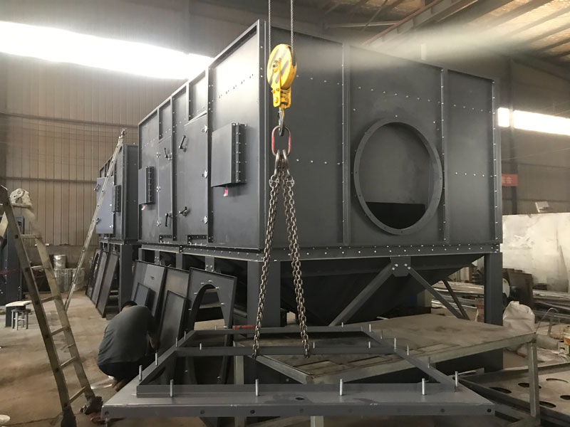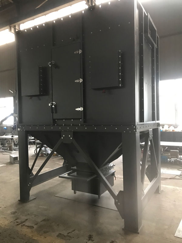 濾筒除塵器的濾筒布置非常重要,可以垂直或傾斜地布置在箱體的花板上。從除灰效果來看,豎向布置合理?;ūP下部為過濾室,上部為氣箱脈沖室。一個(gè)空氣分配板安裝在除塵器的入口處。